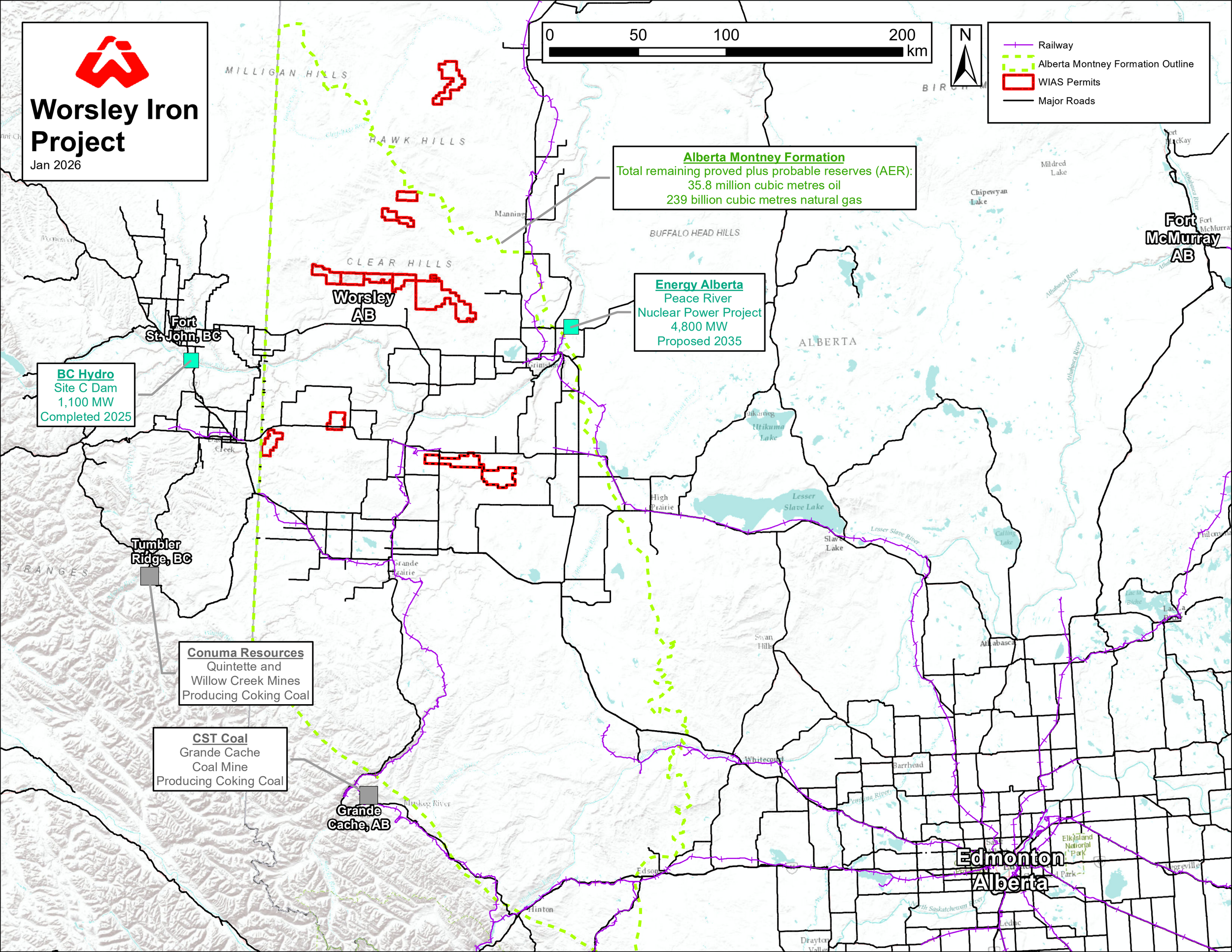WIAS is focused on iron, gold and vanadium exploration and development in the late Cretaceous Smoky Group of Alberta, Canada, with over 1,700 square kilometres of mineral permits.